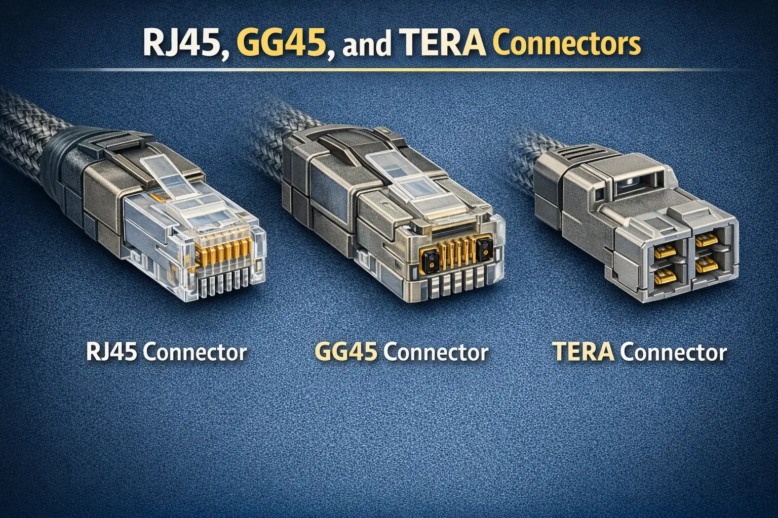 W przypadku kabli tej kategorii należy stosować ekranowane złącza. W zależności od normy i zastosowania może to być ekranowane złącze RJ45, GG45 lub TERA. Przy tych częstotliwościach bardzo ważna jest ciągłość ekranowania między kablem a złączem, dlatego nie należy stosować złączy nieekranowanych.