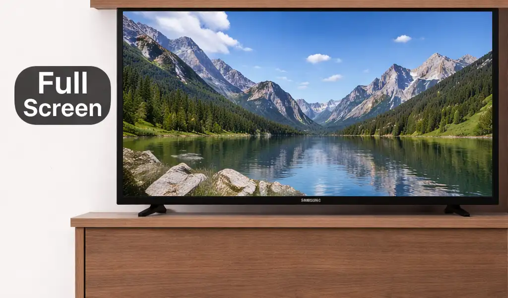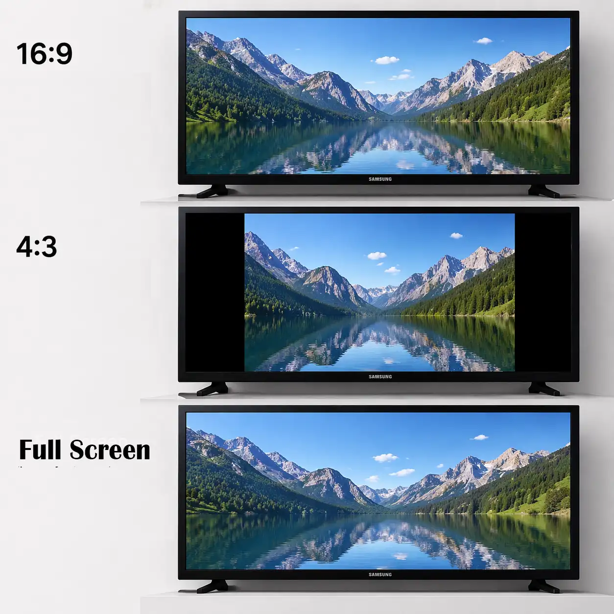 Telewizory Samsung oferują kilka trybów rozmiaru obrazu. Ustawienia te są niezależne od rozdzielczości wideo i można je zmieniać w dowolnym momencie w zależności od oglądanej treści.