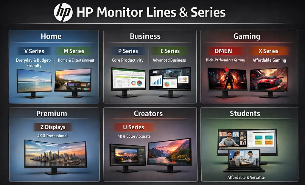 HP oferuje kilka linii monitorów, z których każda jest zaprojektowana, aby spełniać konkretne potrzeby użytkowników i odpowiadać strategiom marketingowym. Kto wybiera monitor do pracy, naturalnie spojrzy na modele przeznaczone do biura lub środowisk biznesowych.