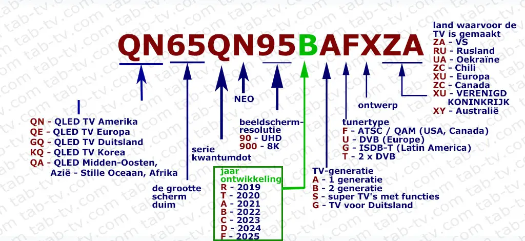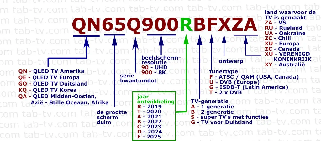 W 2019 roku Samsung ustandaryzował oznaczenia swoich telewizorów QLED, aby dostosować je do numerów modeli telewizorów LED. Ta zmiana wprowadziła identyfikator generacji telewizorów w numerze modelu, który jest czasami używany, szczególnie w modelach przejściowych. Dodatkowo dodano identyfikator telewizorów 8K. Poniżej znajduje się szczegółowe wyjaśnienie, jak rozszyfrować numer modelu telewizora Samsung QLED.